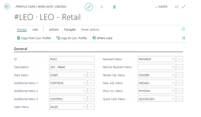 icon, enter POS Menu Profiles, and click Navigate - Profile - Menu List on the action menu.