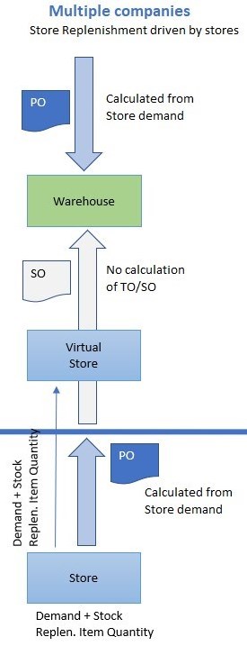 Running Replenishment across multiple companies is a common approach in international operations or for retailers with franchise partners.